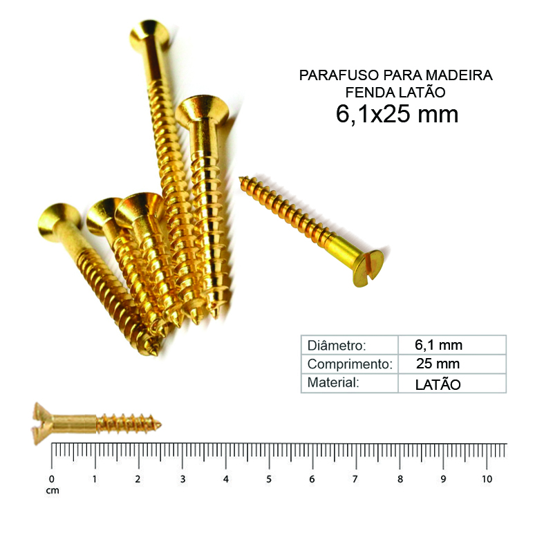 PARAFUSO MADEIRA FENDA LATÃO 6,1 X 25 - 25 PEÇASCód. 158343