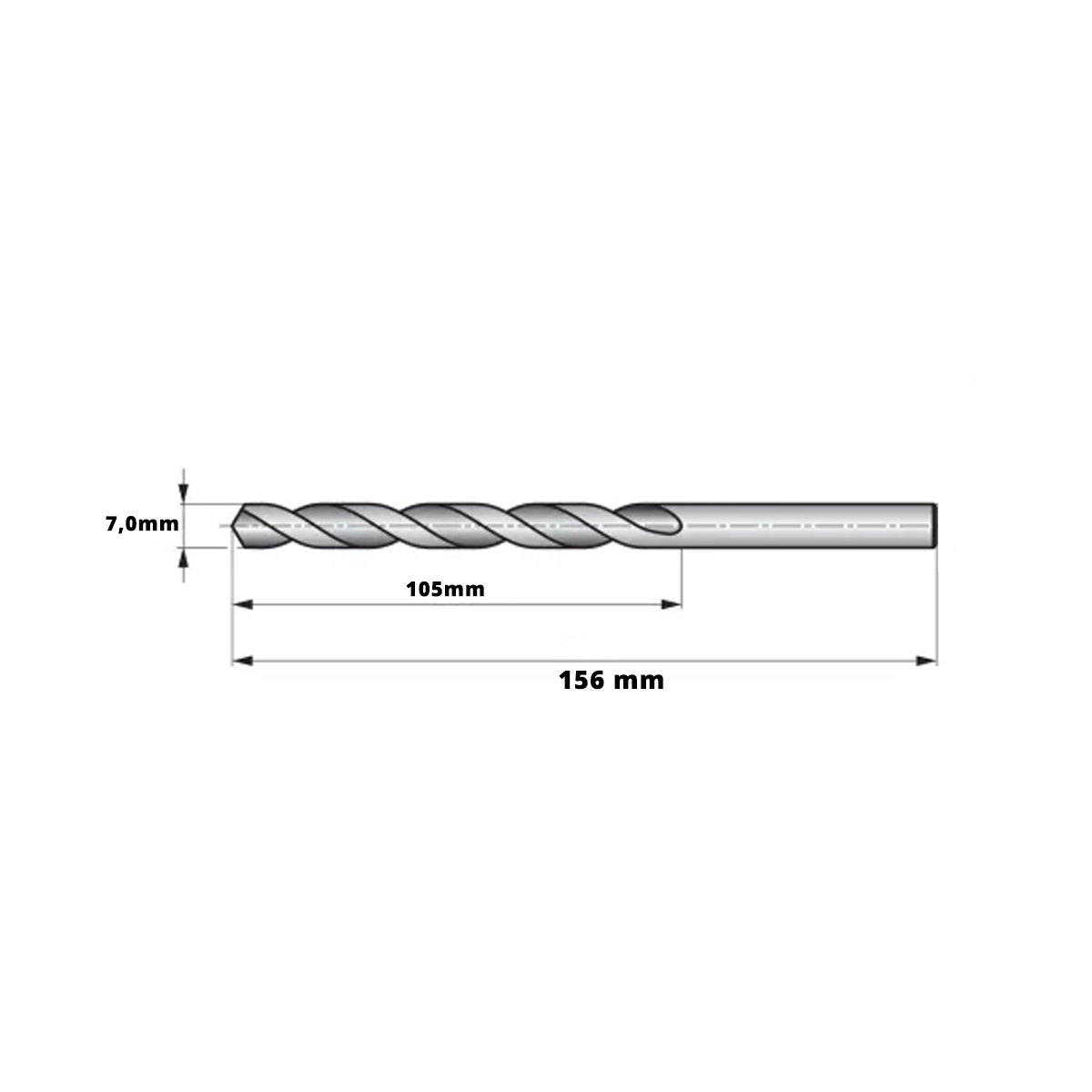BROCA AÇO RÁPIDO HSS DIN340 P/ METAIS LONGA 7,0X156MM-01 PÇ