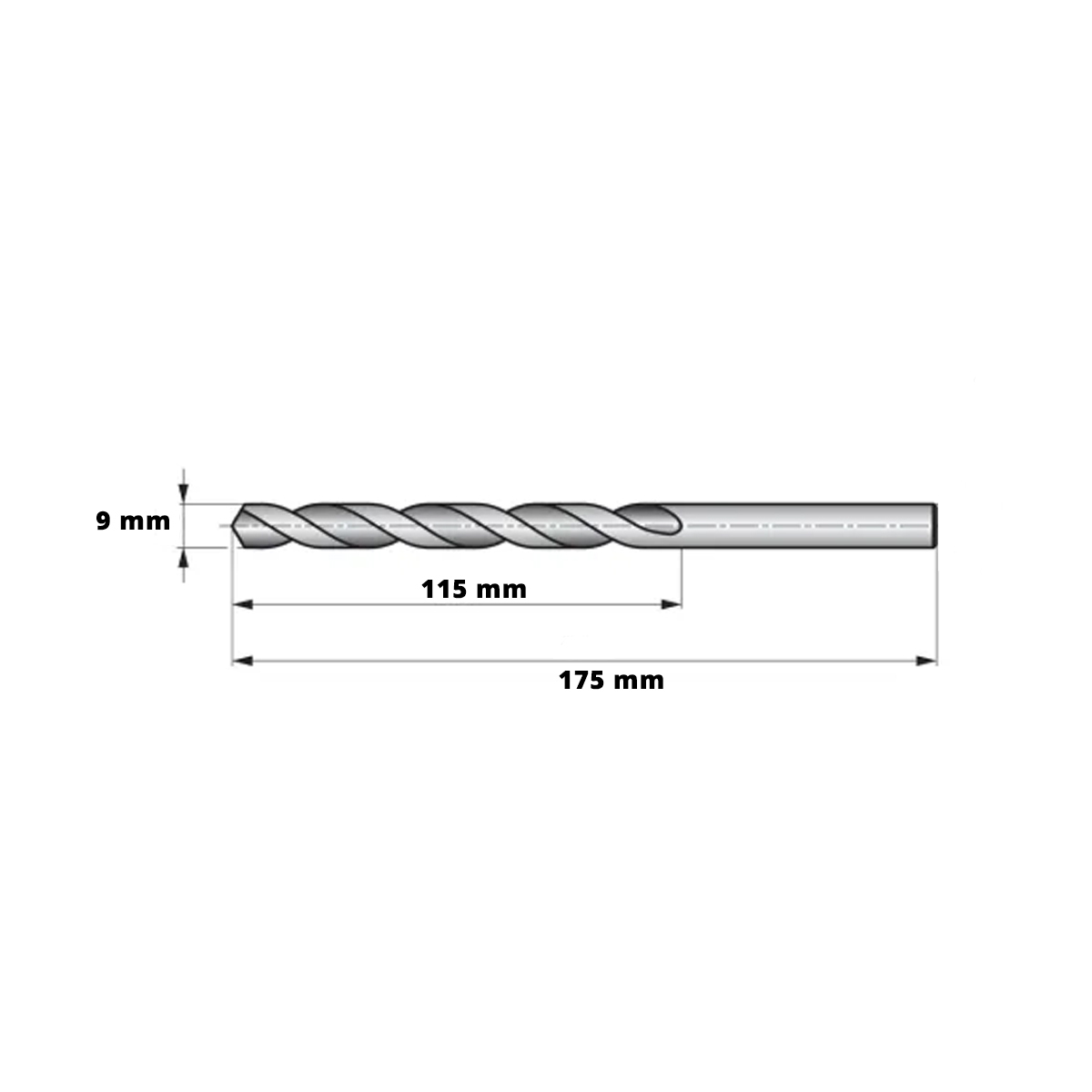 BROCA AÇO RÁPIDO HSS DIN340 P/ METAIS LONGA 9X175MM-01 PÇ