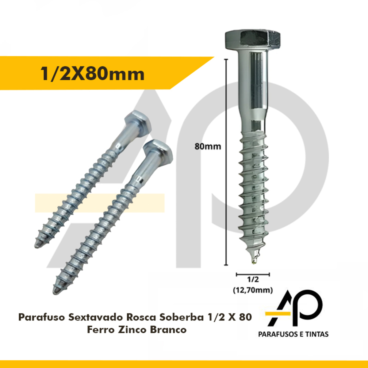 PARAFUSO SEXTAVADO ZINCADO ROSCA SOBERBA 1/2X80-10 UNID