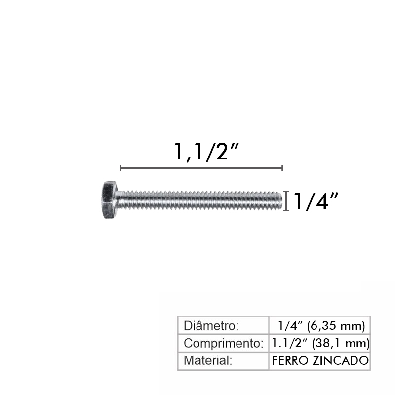 Parafuso Sextavado Rosca Inteira Zincado Branco