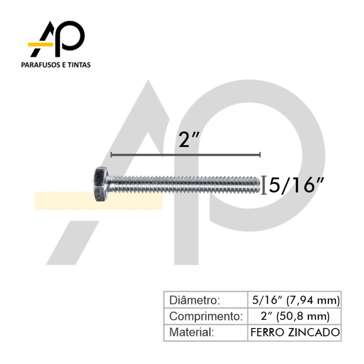 PARAFUSO SEXTAVADO ROSCA INTEIRA 5/16 X 2 ZINCADO COM PORCA E ARRUELA -50 UNID.