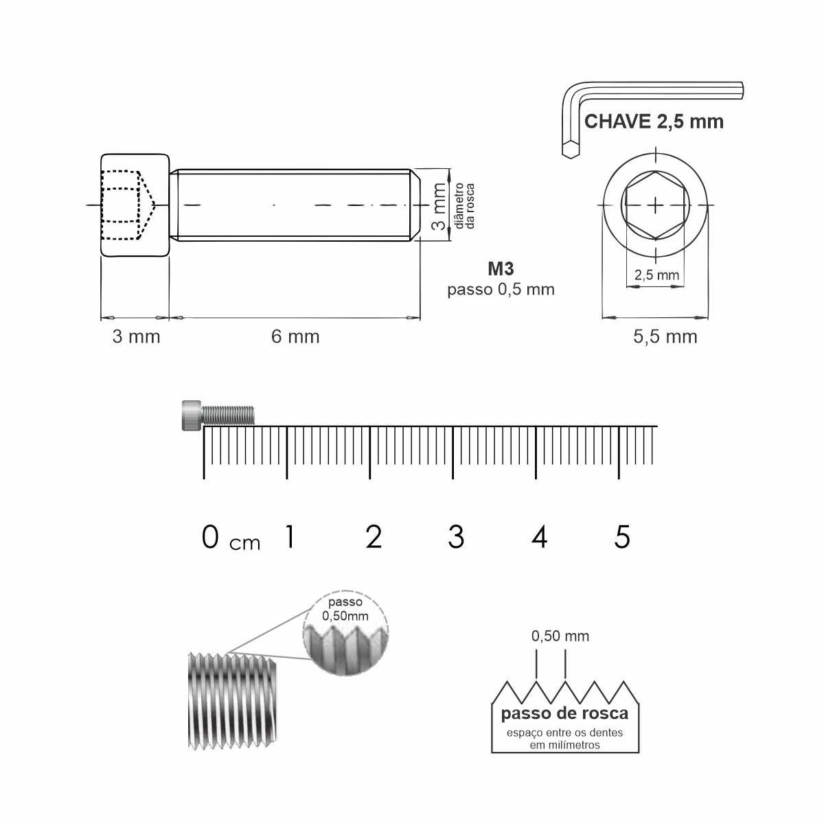 PARAFUSO ALLEN CILINDRICA AÇO 12.9 M3 X 6MM DIN 912 - 50 PEÇASCód. 160018