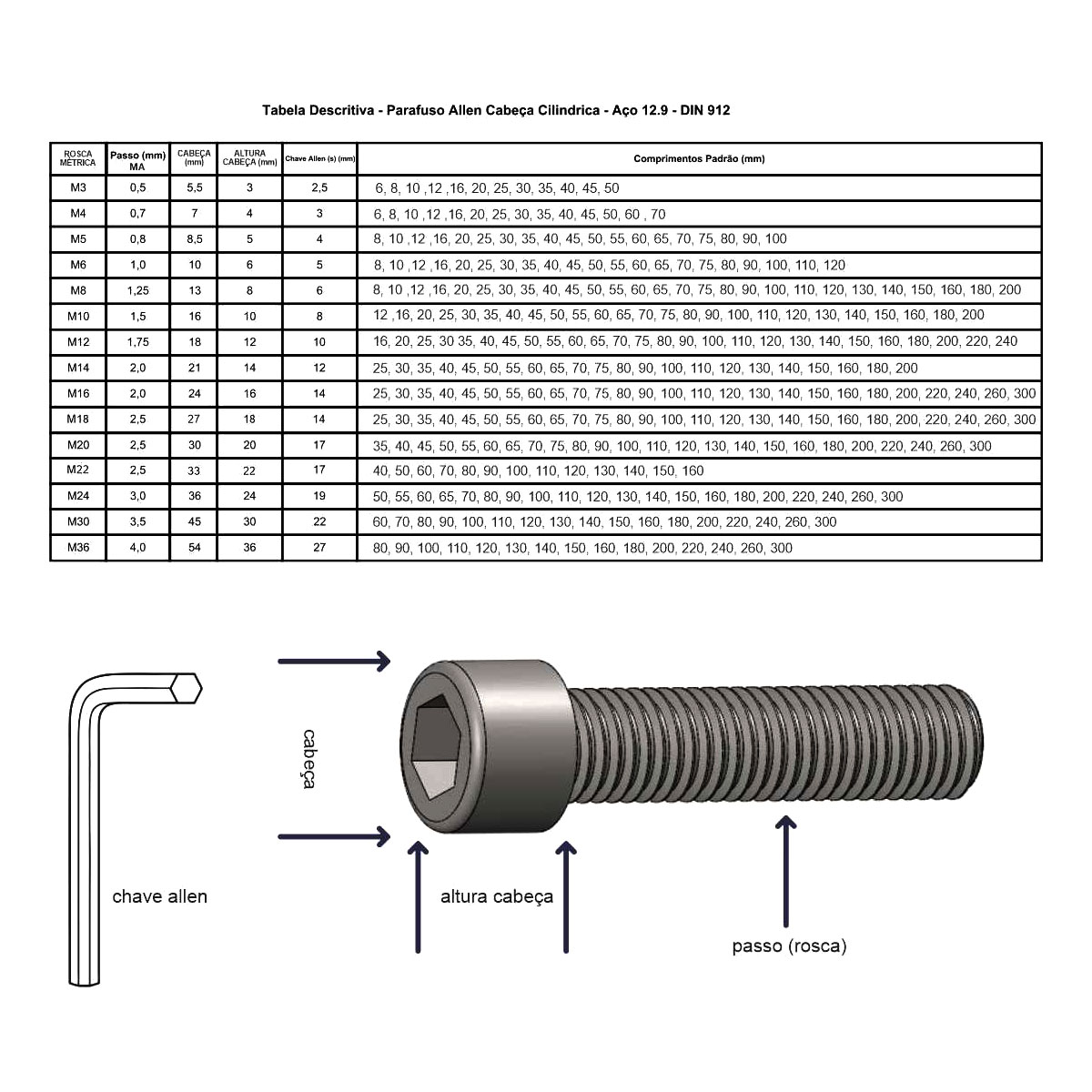 PARAFUSO ALLEN CILINDRICA AÇO 12.9 M4 X 10MM