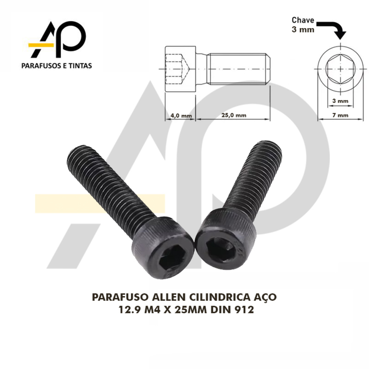 PARAFUSO ALLEN CILINDRICA AÇO 12.9 M4 X 25MM DIN 912 - 50 PEÇASCód. 160094