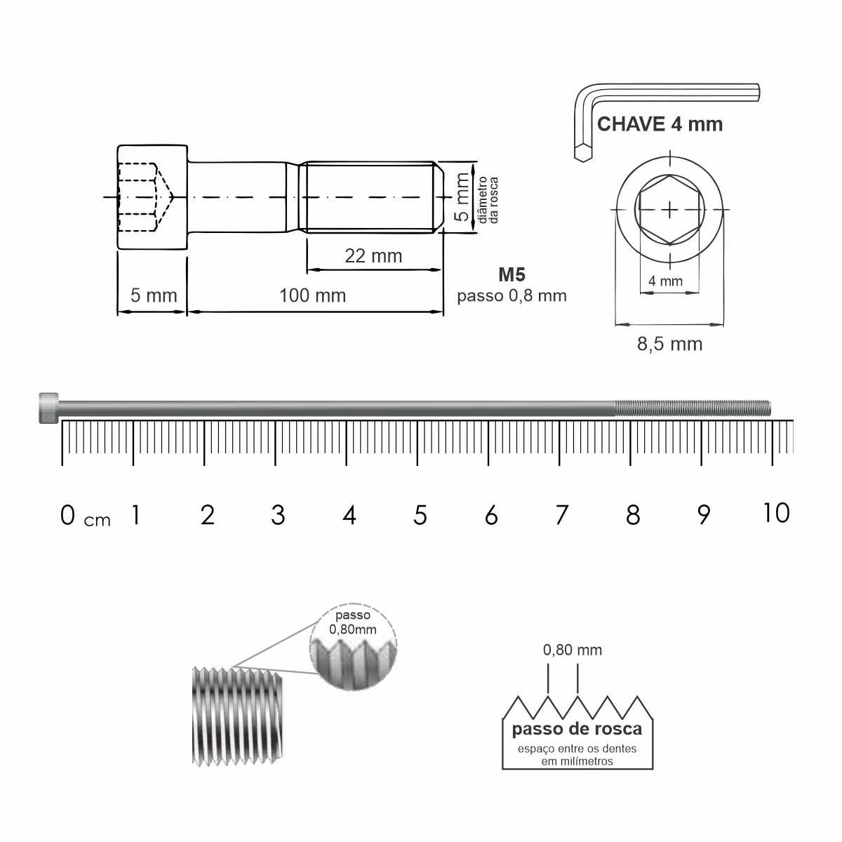 PARAFUSO ALLEN CILINDRICA AÇO 12.9 M5 X 100MM