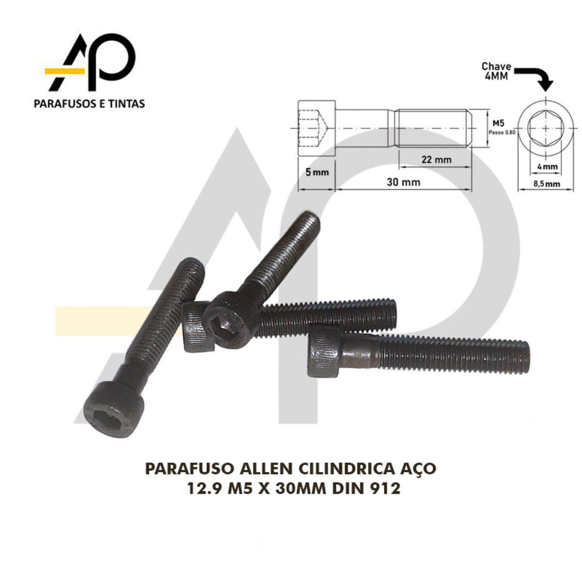 PARAFUSO ALLEN CILINDRICA AÇO 12.9 M5 X 30MM DIN 912 - 50 PEÇASCód. 160155