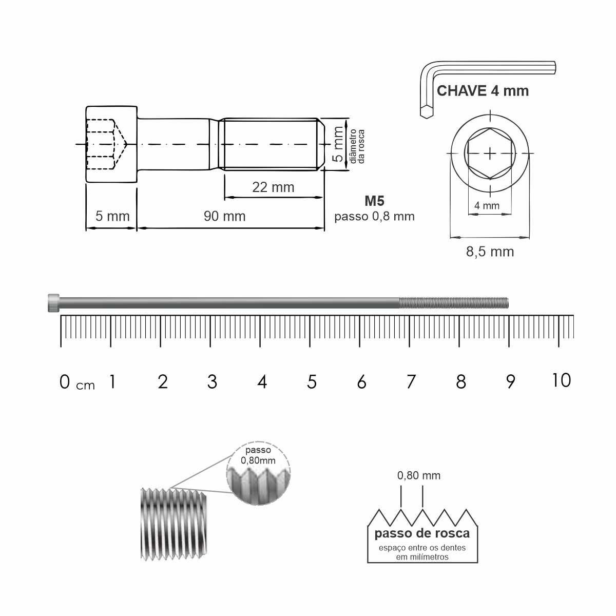 PARAFUSO ALLEN CILINDRICA AÇO 12.9 M5 X 90MM