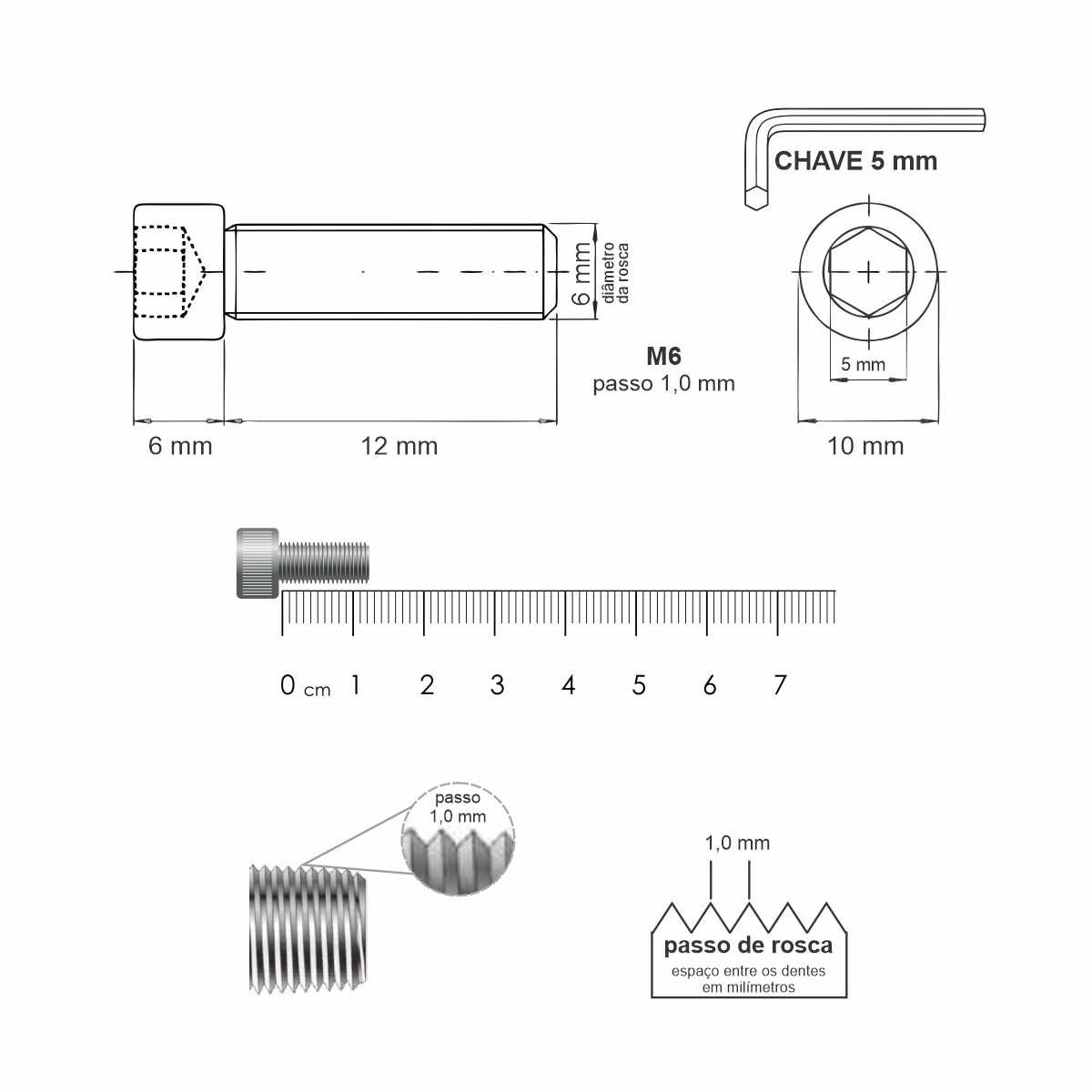 PARAFUSO ALLEN CILINDRICA AÇO 12.9 M6 X 12MM DIN 912 – 50 PEÇASCód. 160261