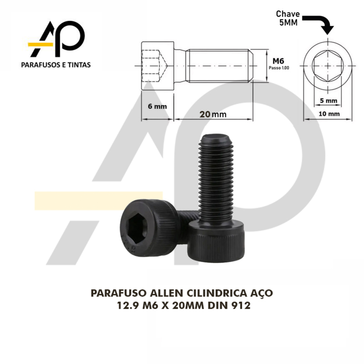 PARAFUSO ALLEN CILINDRICA AÇO 12.9 M6 X 20MM DIN 912 – 50 PEÇASCód. 160285