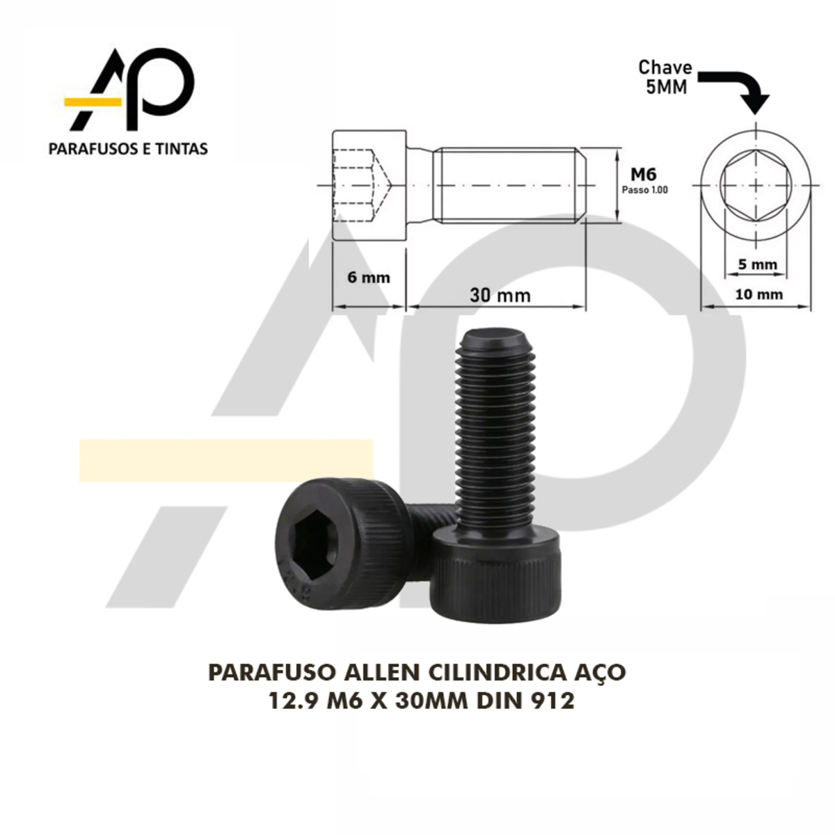 PARAFUSO ALLEN CILINDRICA AÇO 12.9 M6 X 30MM DIN 912 – 50 PEÇASCód. 160292