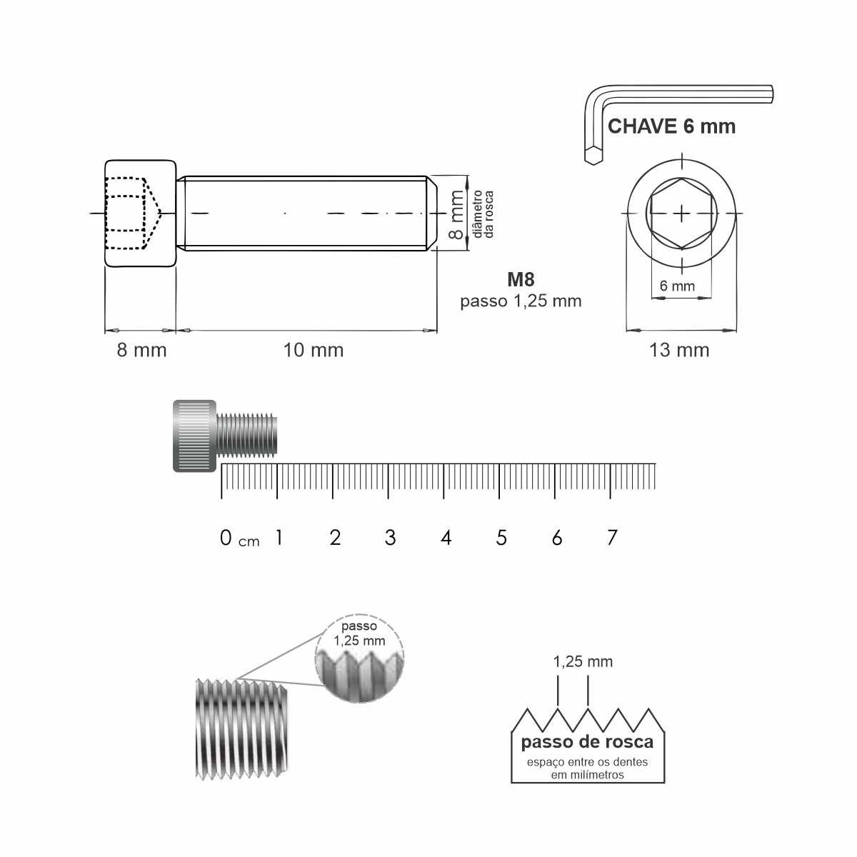 PARAFUSO CABEÇA CILINDRICA ALLEN SEXTAVADO INTERNO M8