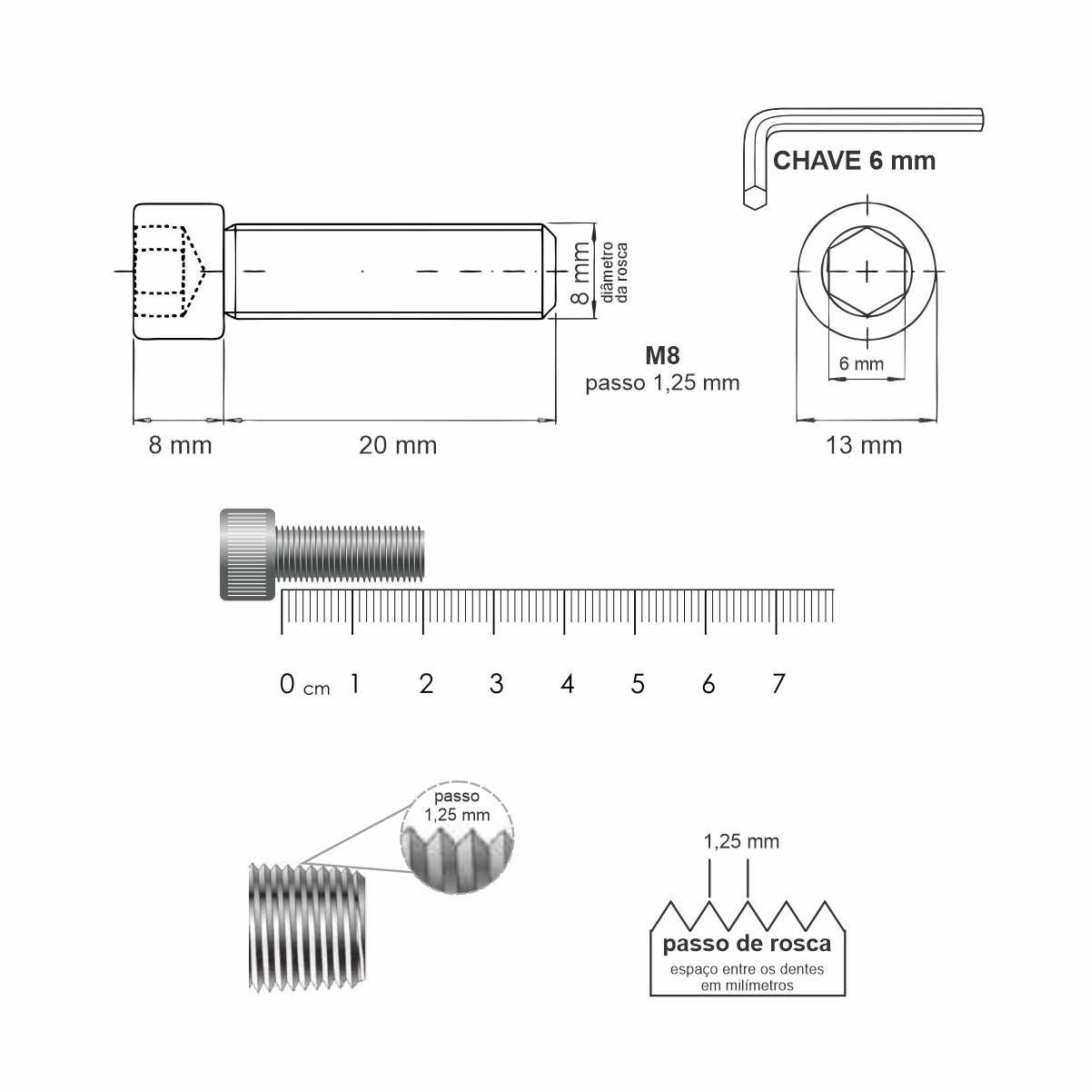 PARAFUSO ALLEN CILINDRICA AÇO 12.9 M8 X 20MM DIN 912 - 20 PEÇASCód. 160421