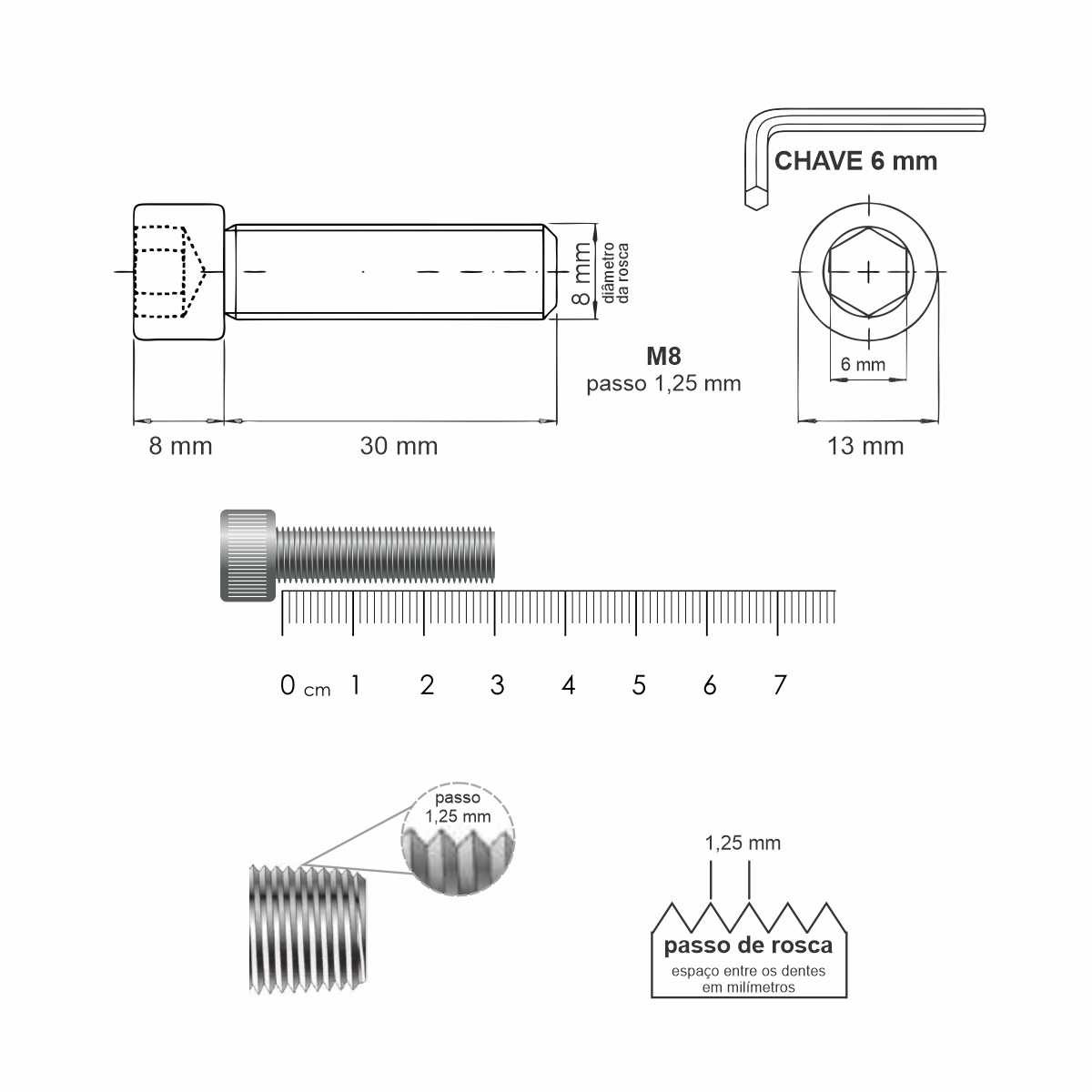 PARAFUSO CABEÇA CILINDRICA ALLEN SEXTAVADO INTERNO M8