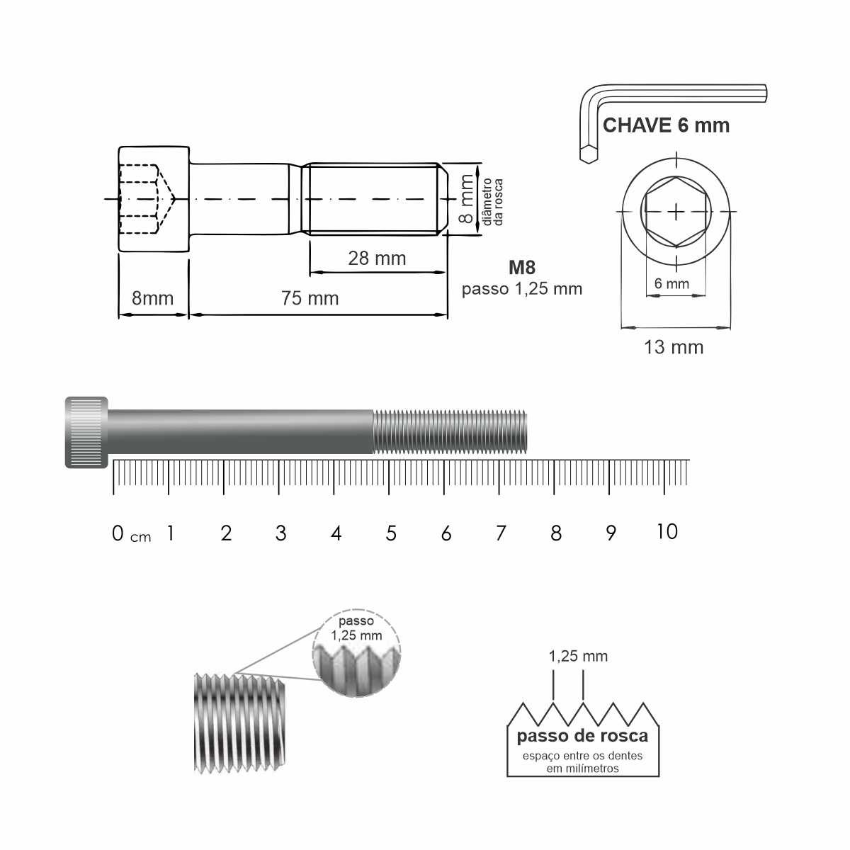 PARAFUSO CABEÇA CILINDRICA ALLEN SEXTAVADO INTERNO M8
