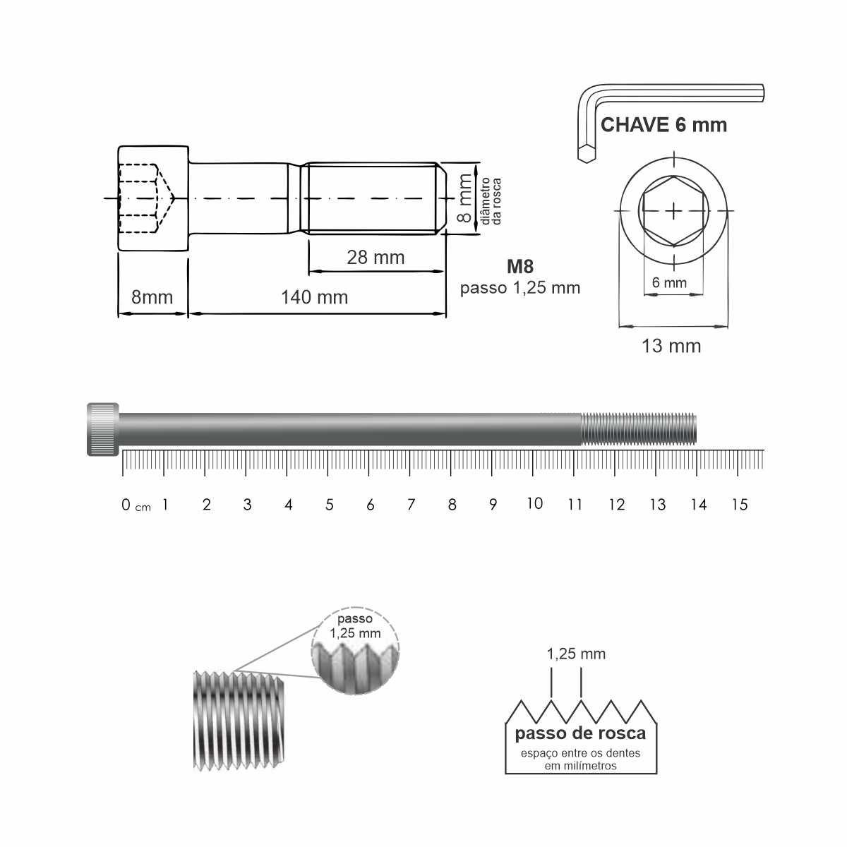 PARAFUSO ALLEN CILINDRICA AÇO 12.9 M8 X 140MM DIN 912 – 10 PEÇASCód. 160575