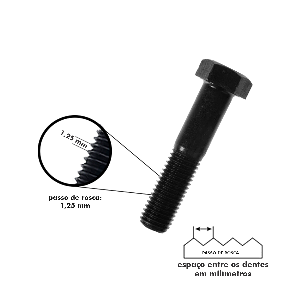 Parafuso Sextavado Aço 8.8 M12 – Tipo de Rosca: MB passo 1,25mm