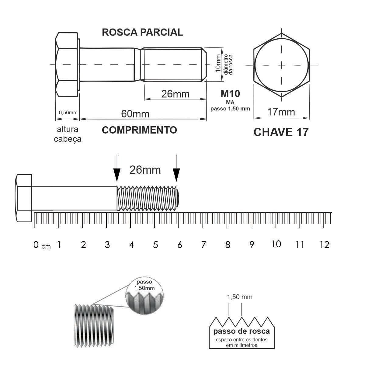 Parafuso Sextavado Aço 8.8 M10 – Tipo de Rosca: MA passo 1,50mm