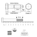 - Rosca: Métrica ISO (padrão DIN 933 / DIN 931)