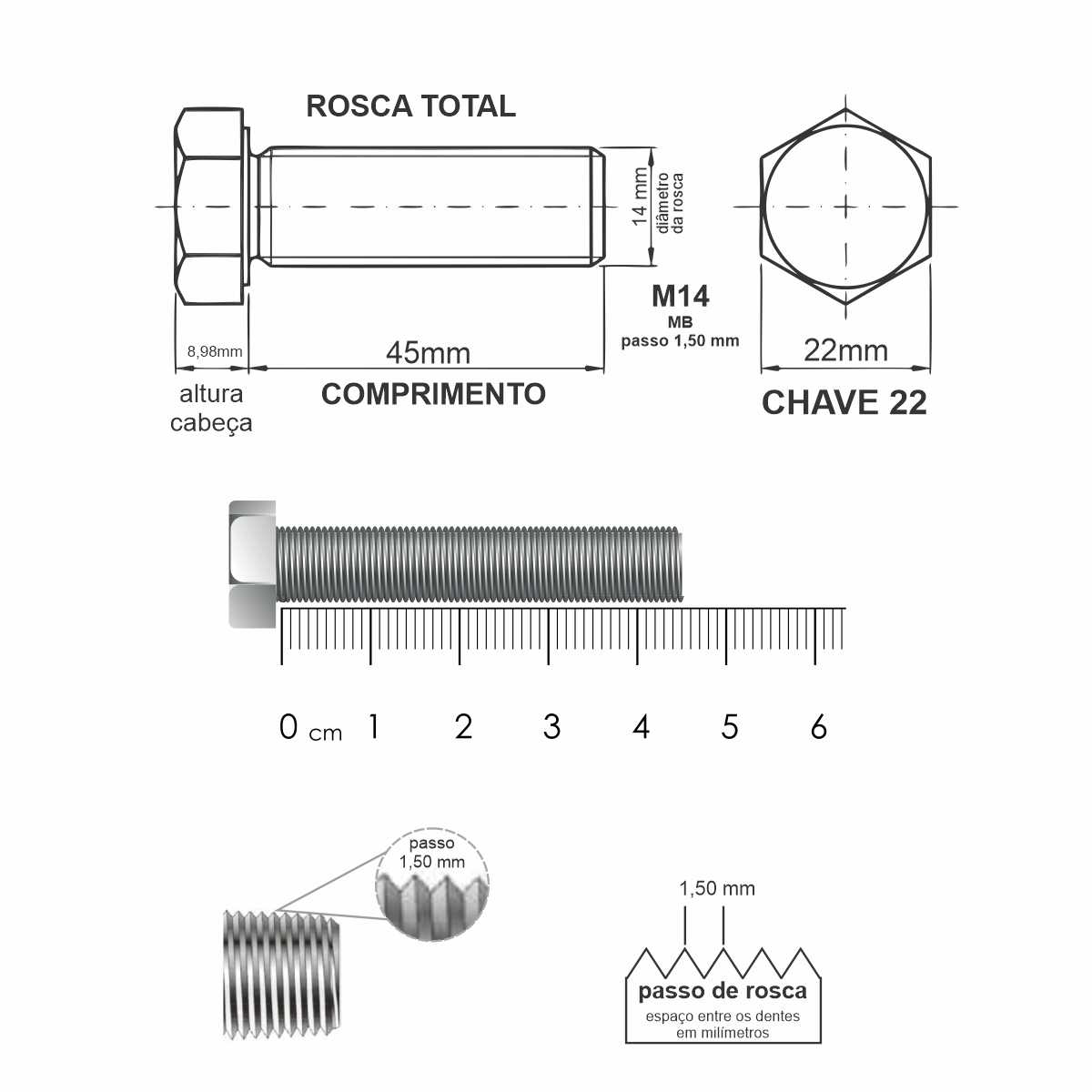 Parafuso Sextavado Aço 8.8 M14 – Tipo de Rosca: MB passo 1,50mm