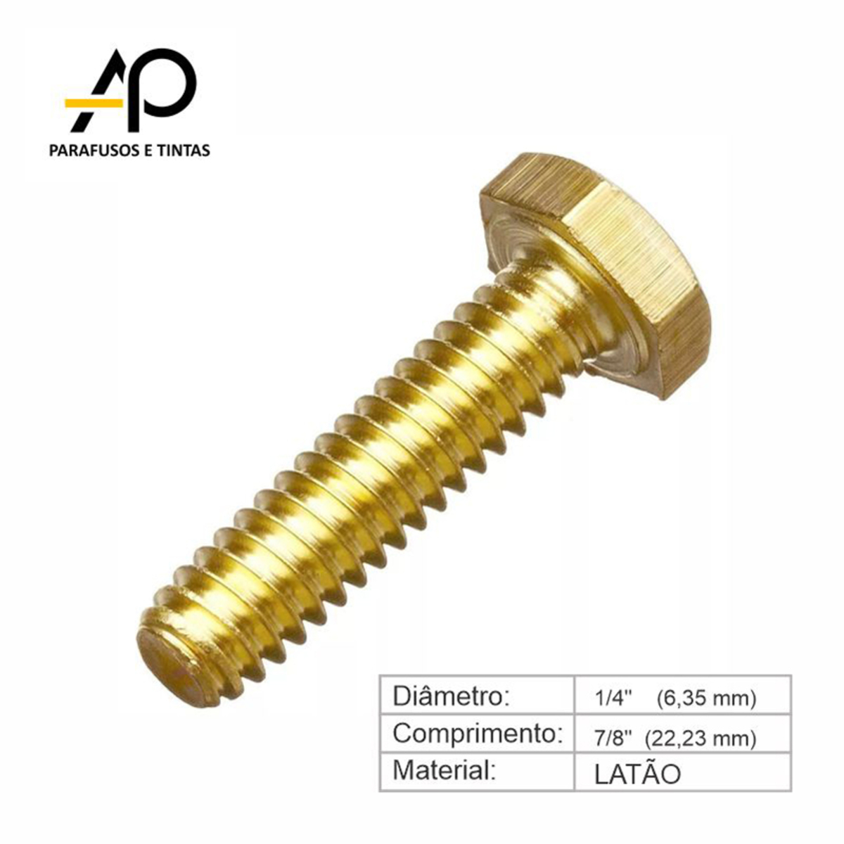 PARAFUSO SEXTAVADO LATÃO 1/4 X 7/8 - 15 PEÇASCód. 157933
