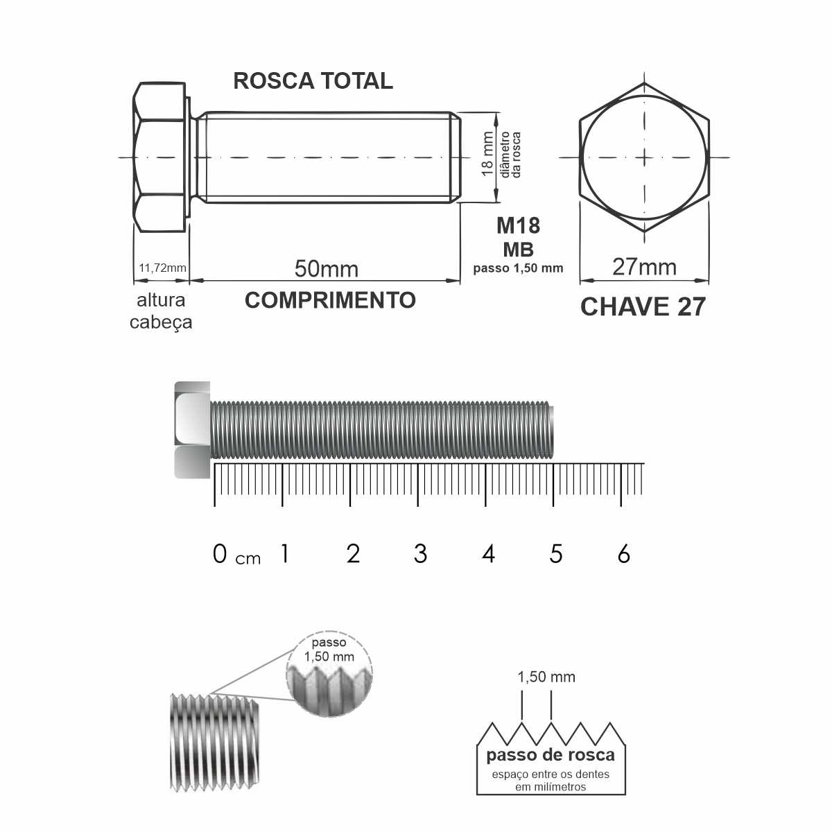 PARAFUSO SEXTAVADO AÇO 8.8 M18X50MM MB DIN 961-5 PEÇAS