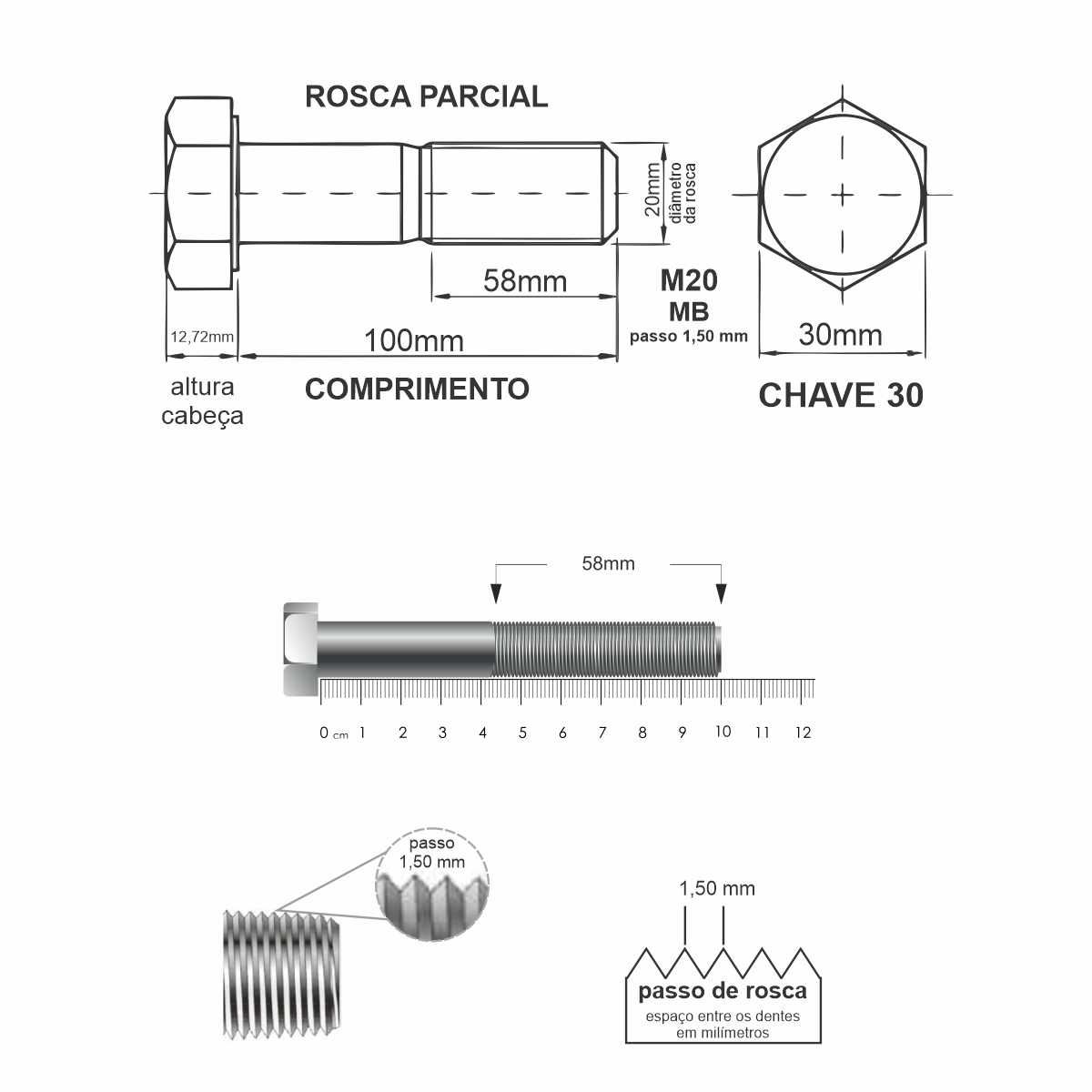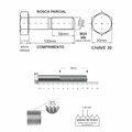 - Largura da cabeça (chave): 30 mm (conforme DIN 933)