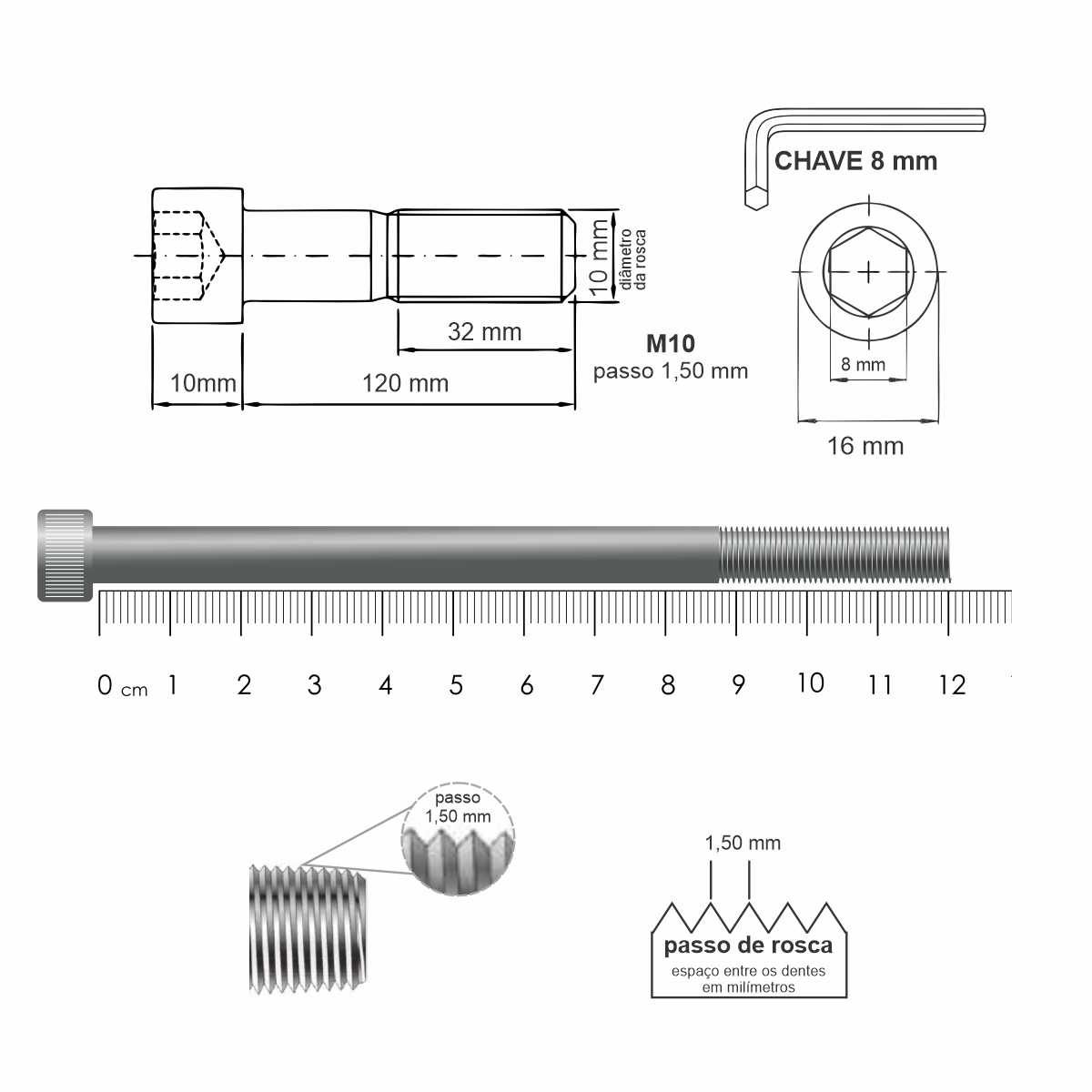 - Tipo de Parafuso : Allen (Sextado Interno) com Cabeça Cilíndrica
