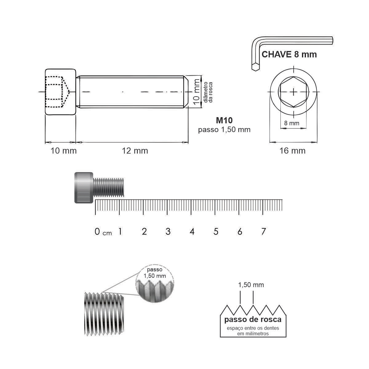 - Tipo de Parafuso : Allen (Sextado Interno) com Cabeça Cilíndrica