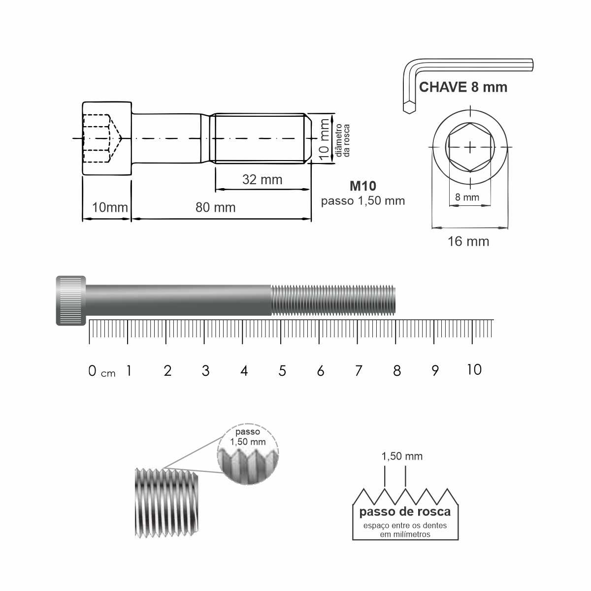 - Tipo de Parafuso : Allen (Sextado Interno) com Cabeça Cilíndrica
