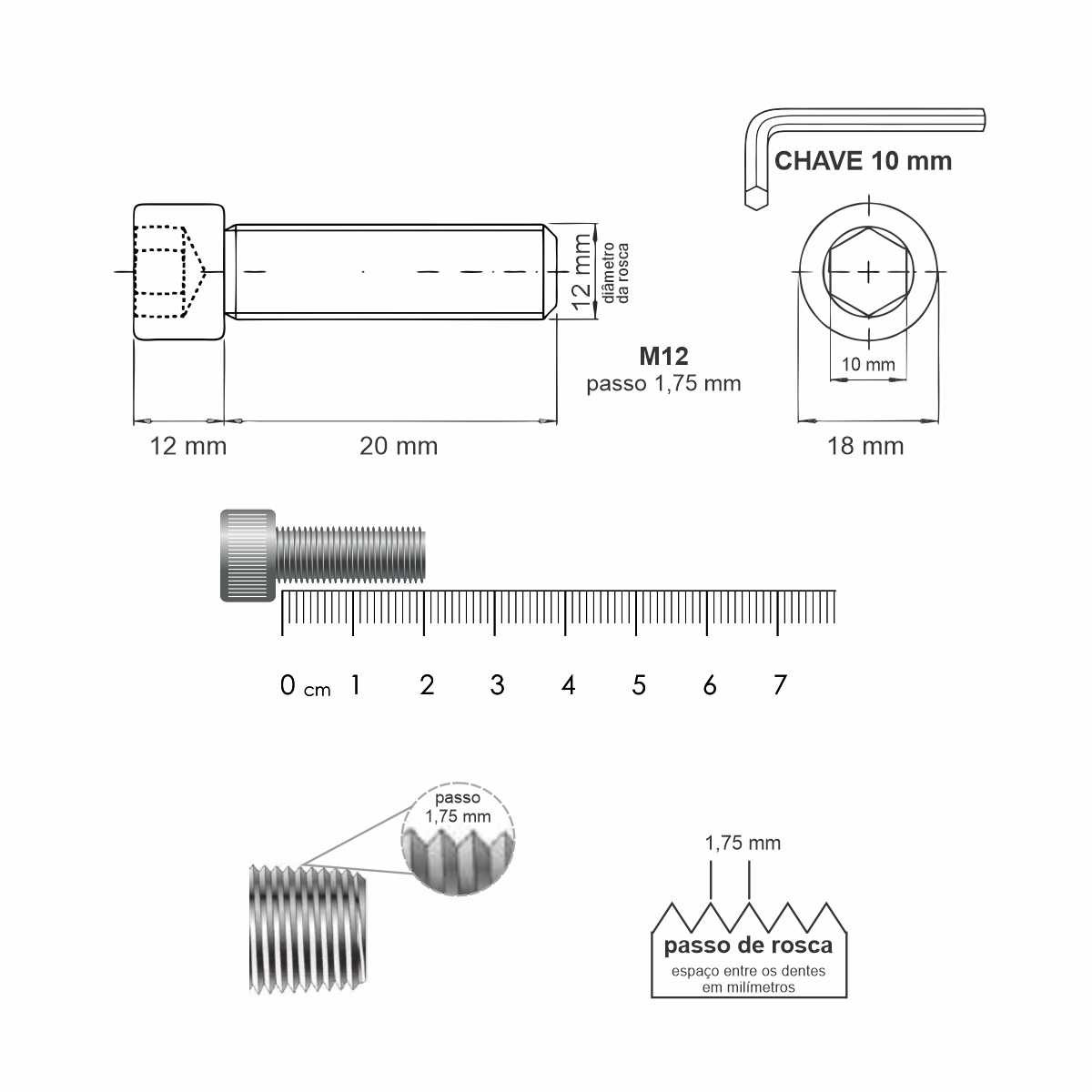 - Tipo de Parafuso : Allen (Sextado Interno) com Cabeça Cilíndrica