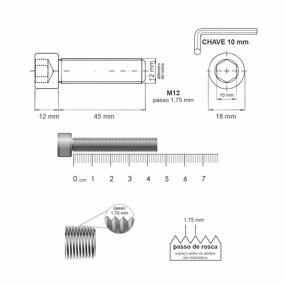 - Tipo de Parafuso: Allen (Sextavado Interno) com Cabeça Cilíndrica