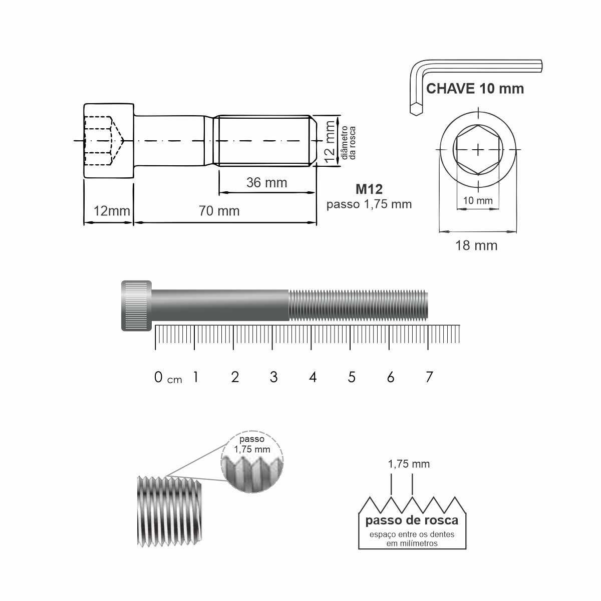 - Tipo de Parafuso: Allen (Sextavado Interno) com Cabeça Cilíndrica