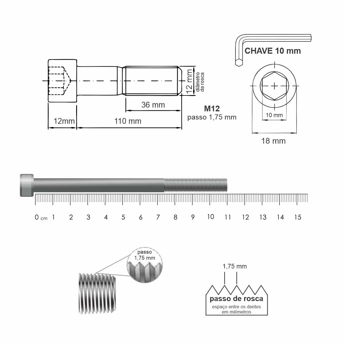 - Tipo de Parafuso : Allen (Sextado Interno) com Cabeça Cilíndrica