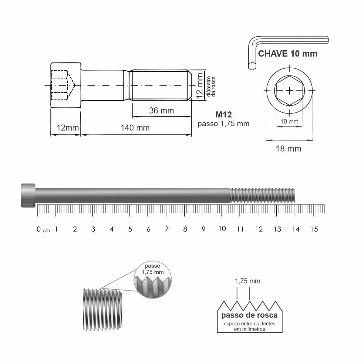 PARAFUSO ALLEN CILINDRICA AÇO 12.9 M12 X 140MM DIN 912 - 5 PEÇAS