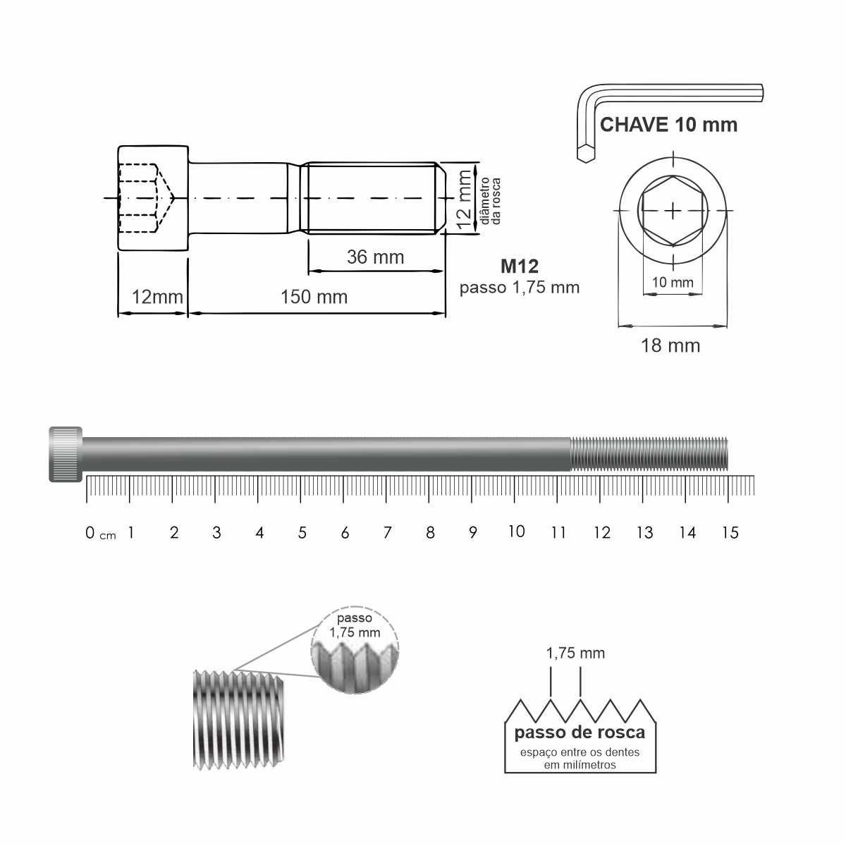 - Passo da Rosca : 1,50 mm (Rosca MA – Métrica Grossa)