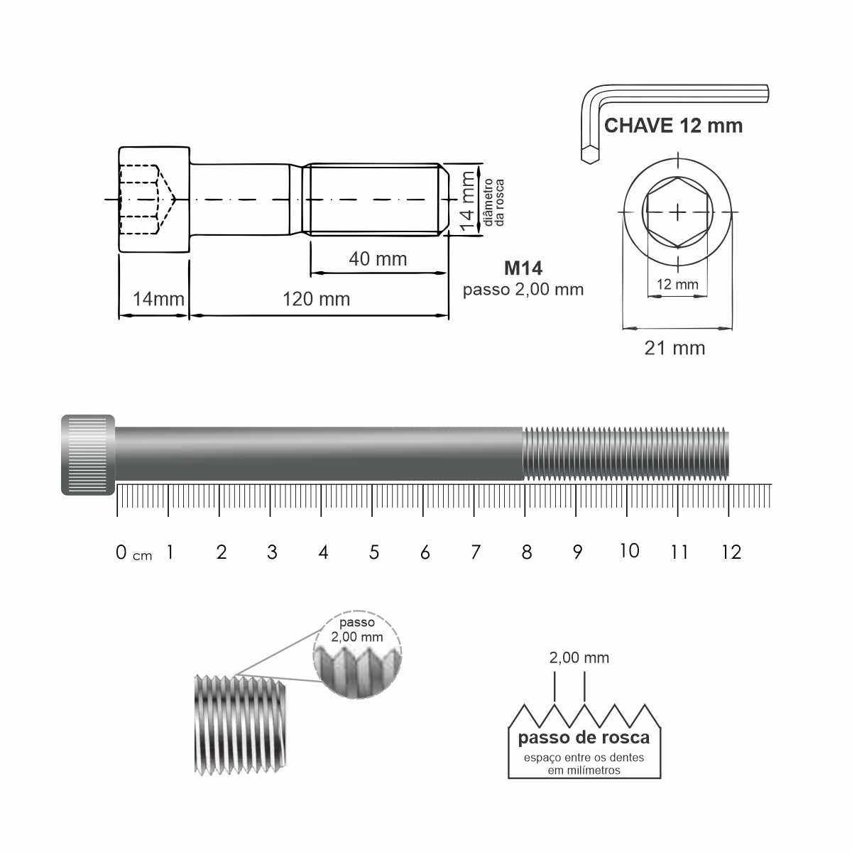 - Tipo de Parafuso: Allen (Sextavado Interno) com Cabeça Cilíndrica
