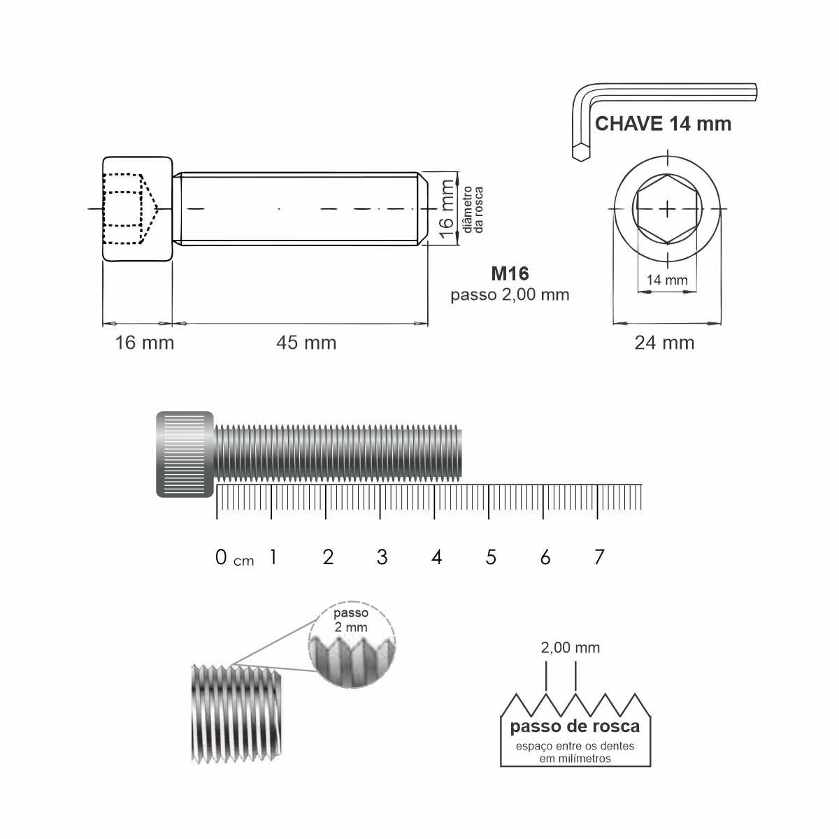 Parafuso Allen Cabeça Cilíndrica Aço Liga 12.9 M16 - Alta Resistência