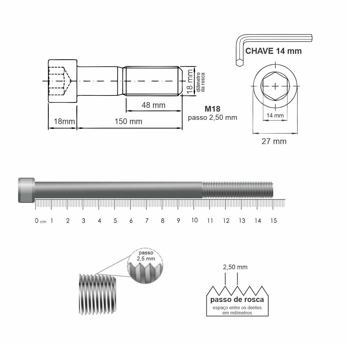 - Tamanho da chave Allen (s): 14 mm (padrão DIN 912 para M18)