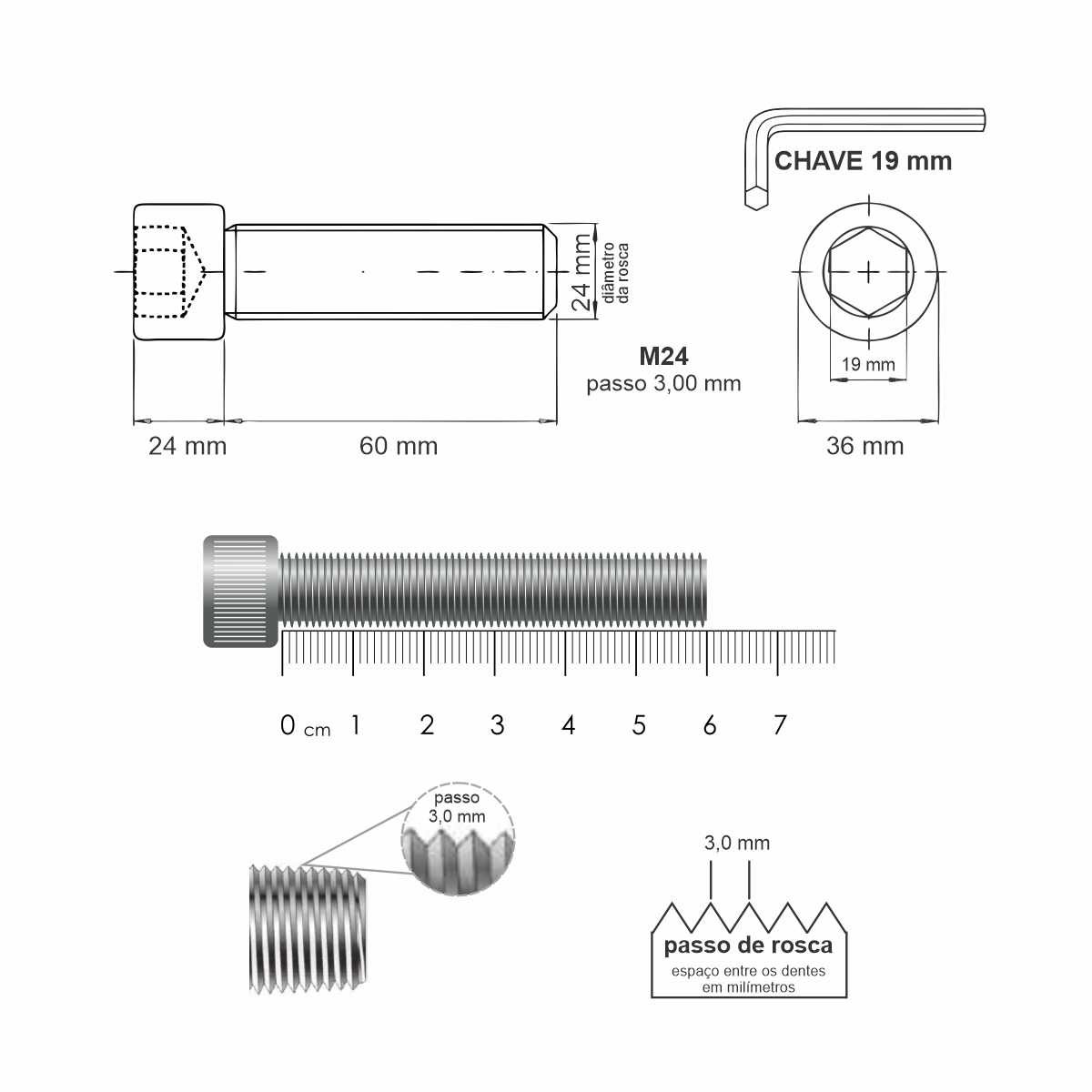 Parafuso Allen Cabeça Cilíndrica Aço Liga 12.9 M24 - Alta Resistência