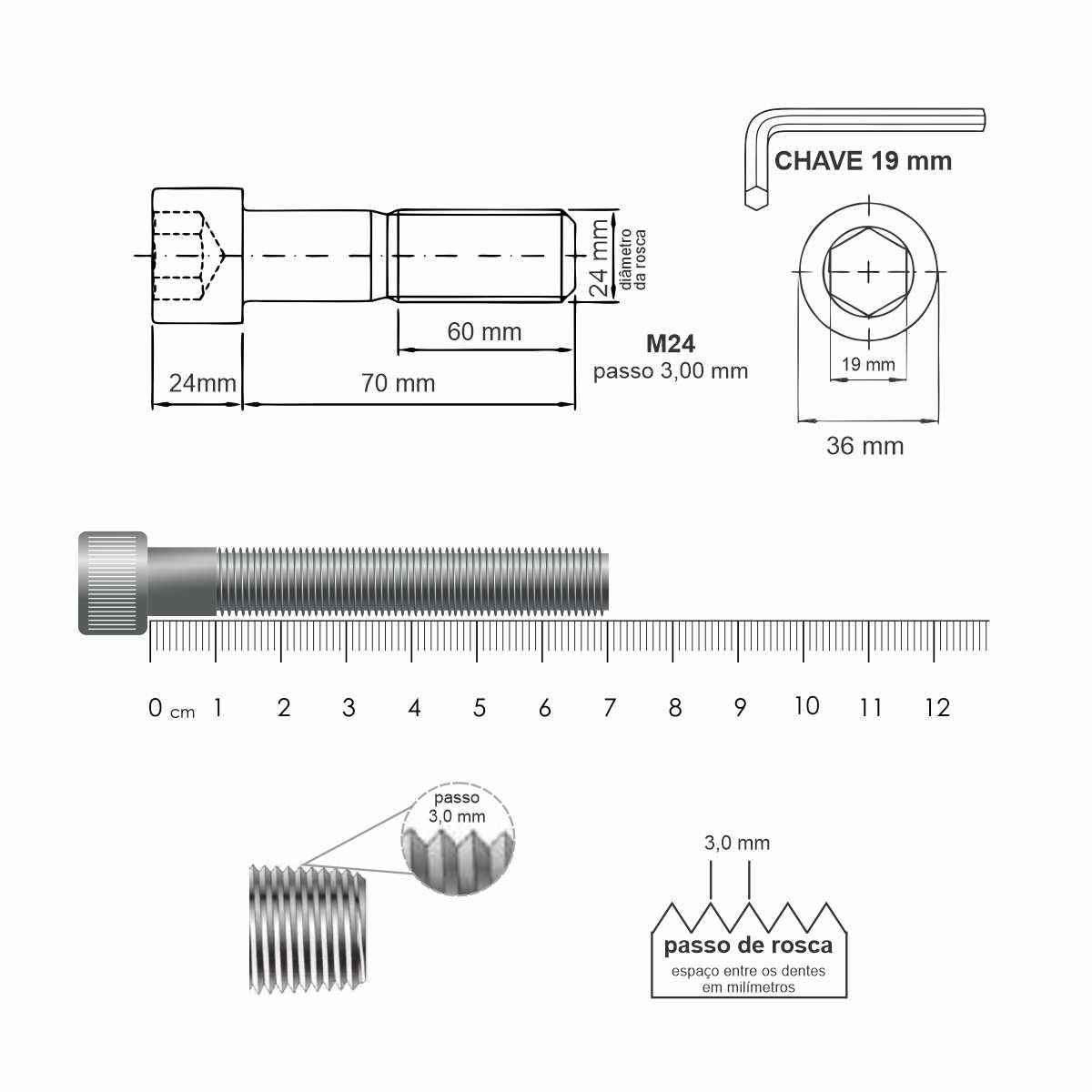 Parafuso Allen Cabeça Cilíndrica Aço Liga 12.9 M24 - Alta Resistência
