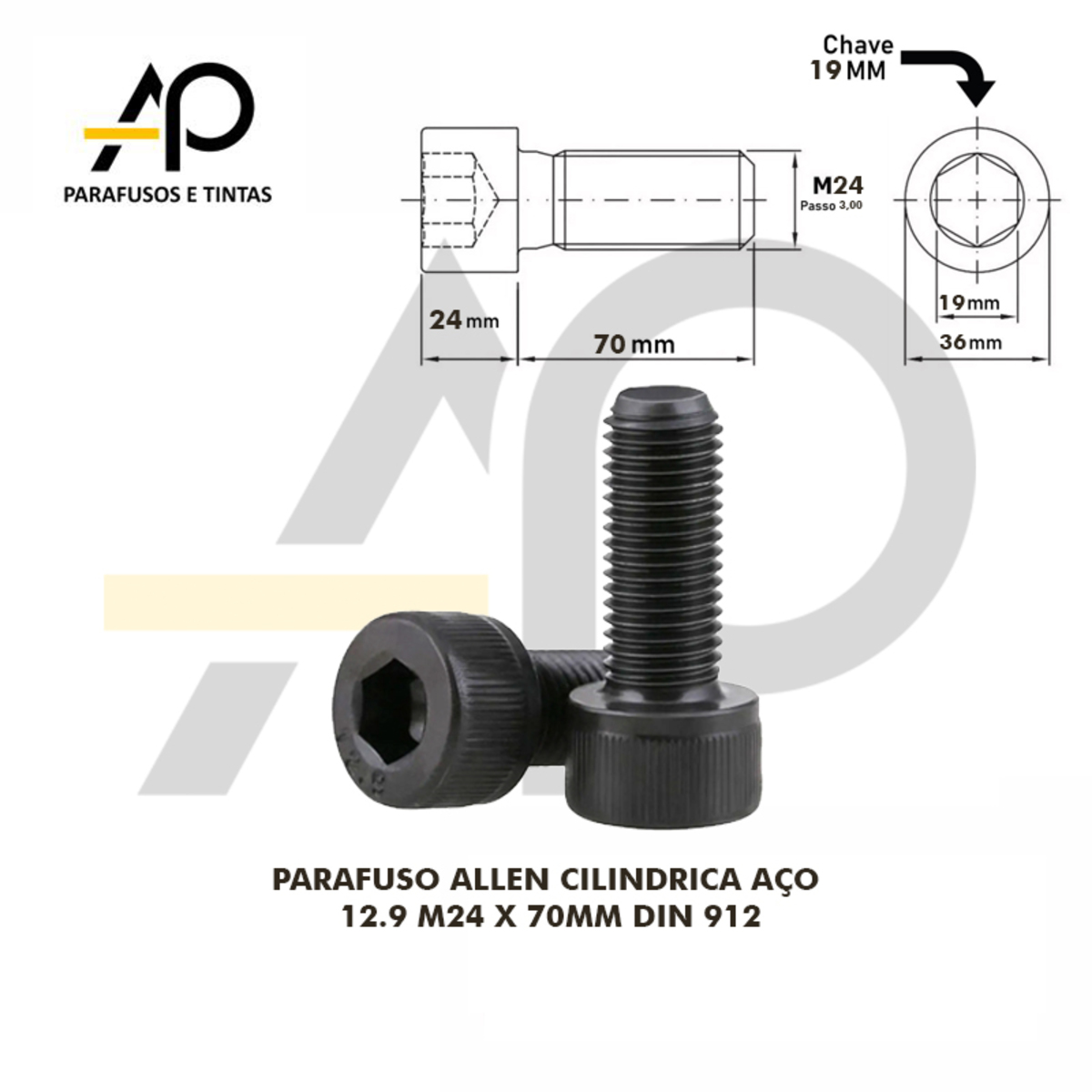 PARAFUSO ALLEN CILINDRICA AÇO 12.9 M24 X70MM DIN 912 - 2 PEÇASCód. 164559