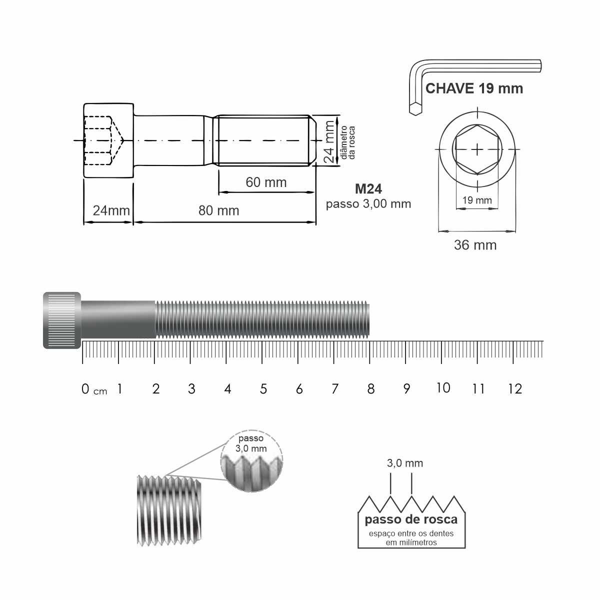 Parafuso Allen Cabeça Cilíndrica Aço Liga 12.9 M24 - Alta Resistência