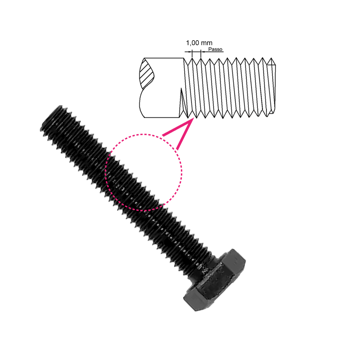 - Passo da Rosca: 1,00 mm (Rosca – MA)