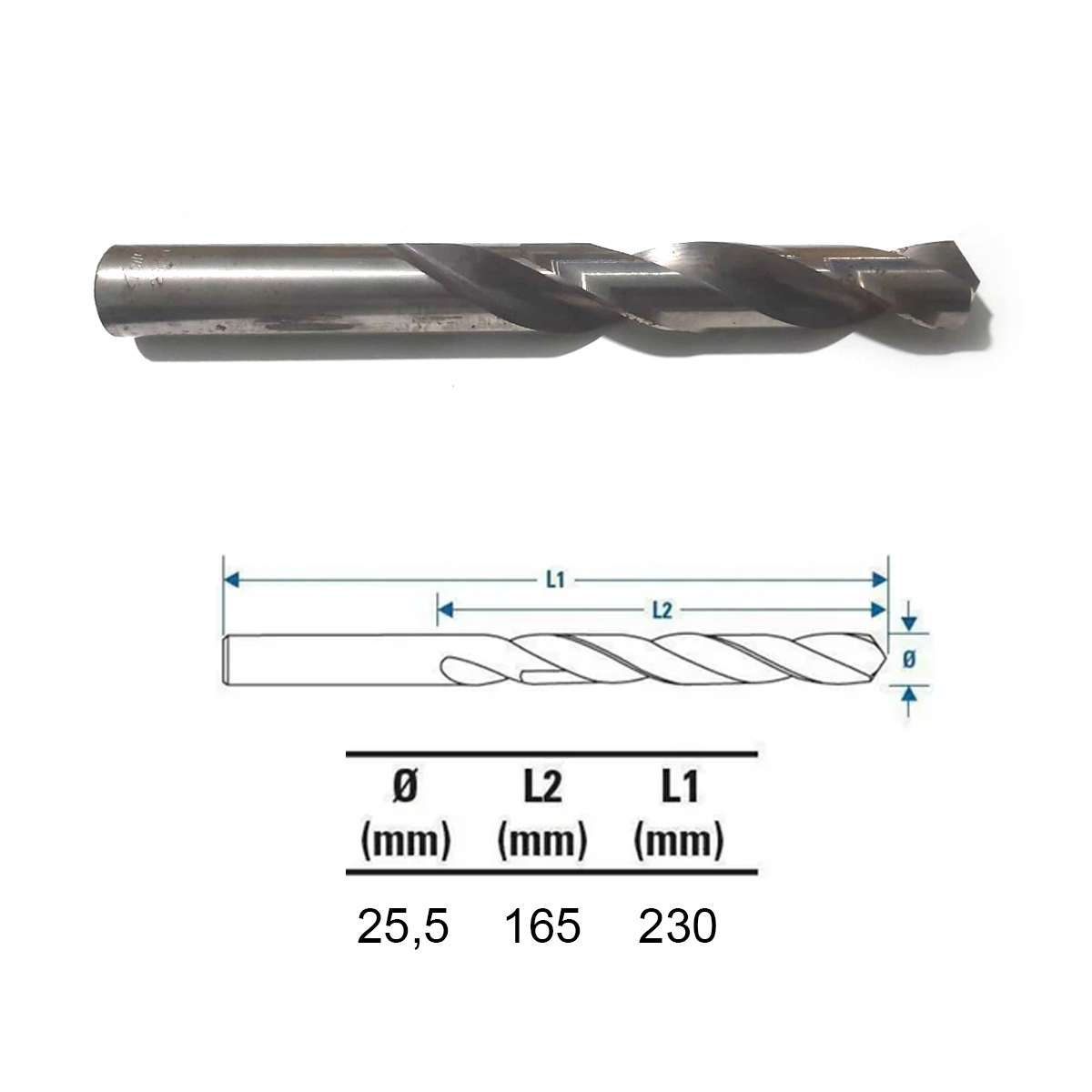 É o tipo mais usual de Brocas para furação de metais. Pode ser utilizado em: Furadeiras elétricas manuais, de bancada ou coluna, tornos, máquinas operatrizes e centros de usinagem.
