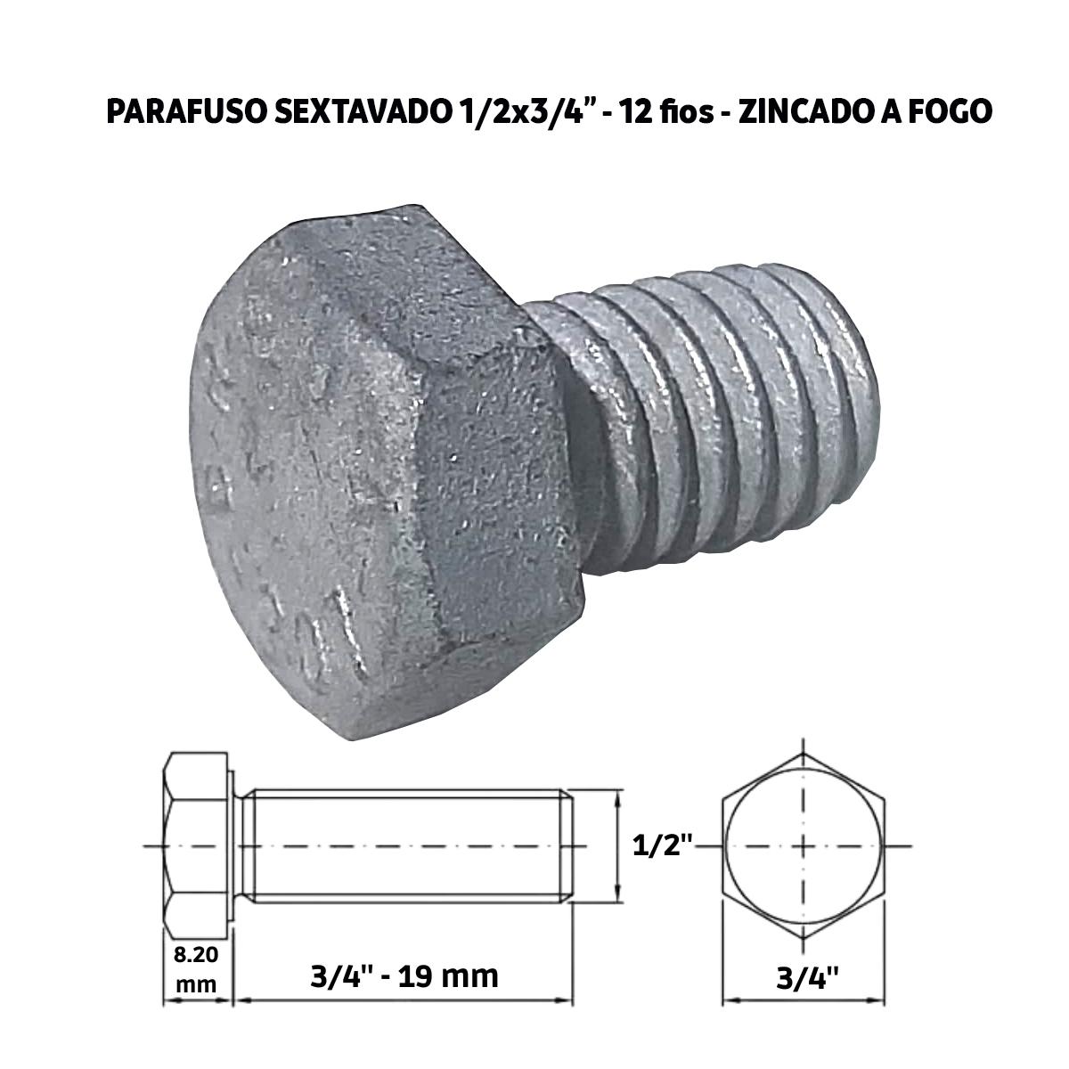 "Parafuso Sextavado Rosca Inteira Zincado a Fogo