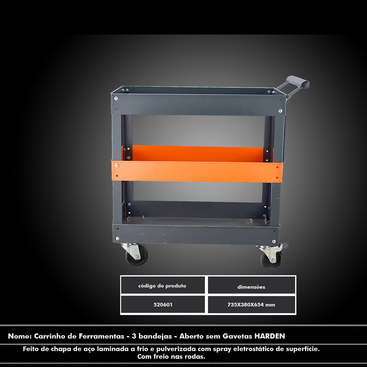 • CARRINHO DE FERRAMENTAS ABERTO SEM GAVETAS HARDEN-520601