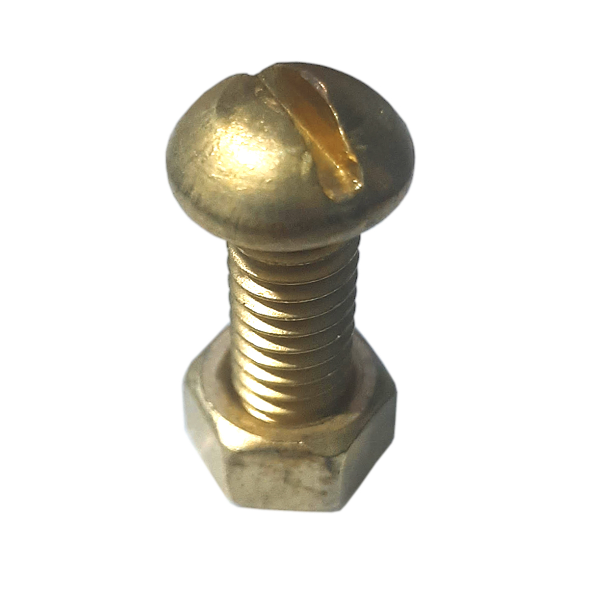 Porca: De latão, compatível com a rosca do parafuso, garantindo fixação firme.