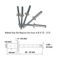 REBITE POP DE REPUXO EM INOX 4.8 X 12 - 512 - 50 PEÇASCód. 158831
