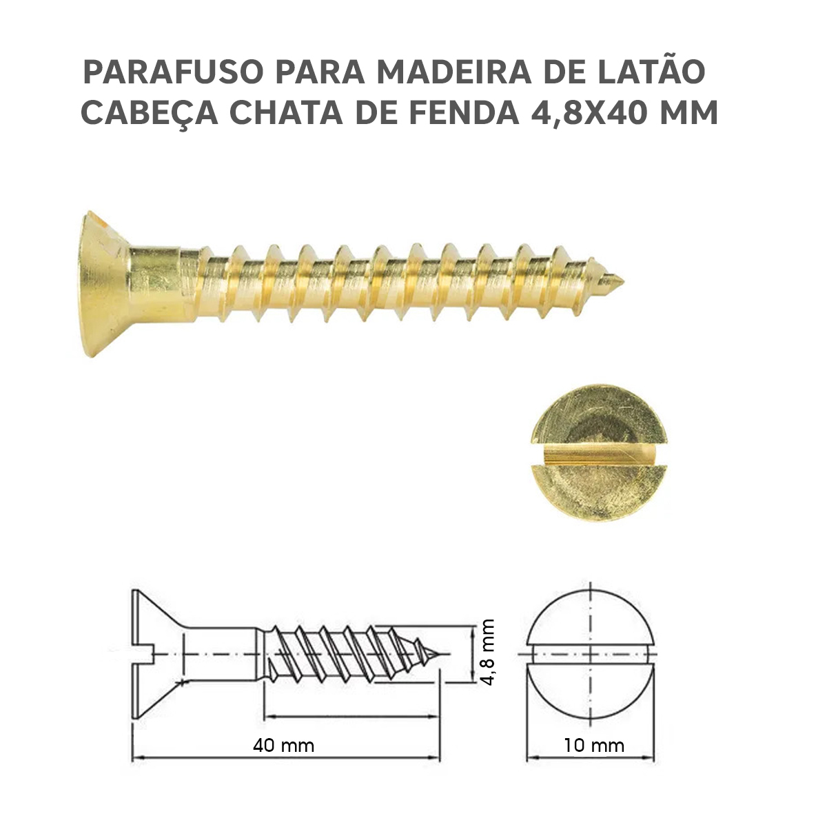 PARAFUSO LATÂO PARA MADEIRA FENDA 4,8X40-100UNID.